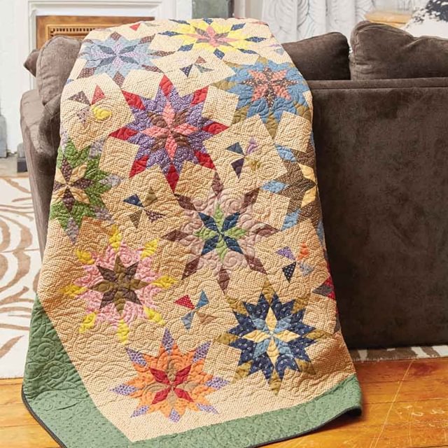 The instructions include how to make a basic kaleidoscope block as well as an Alaska block in four different sizes, from 9 to 16-inches.