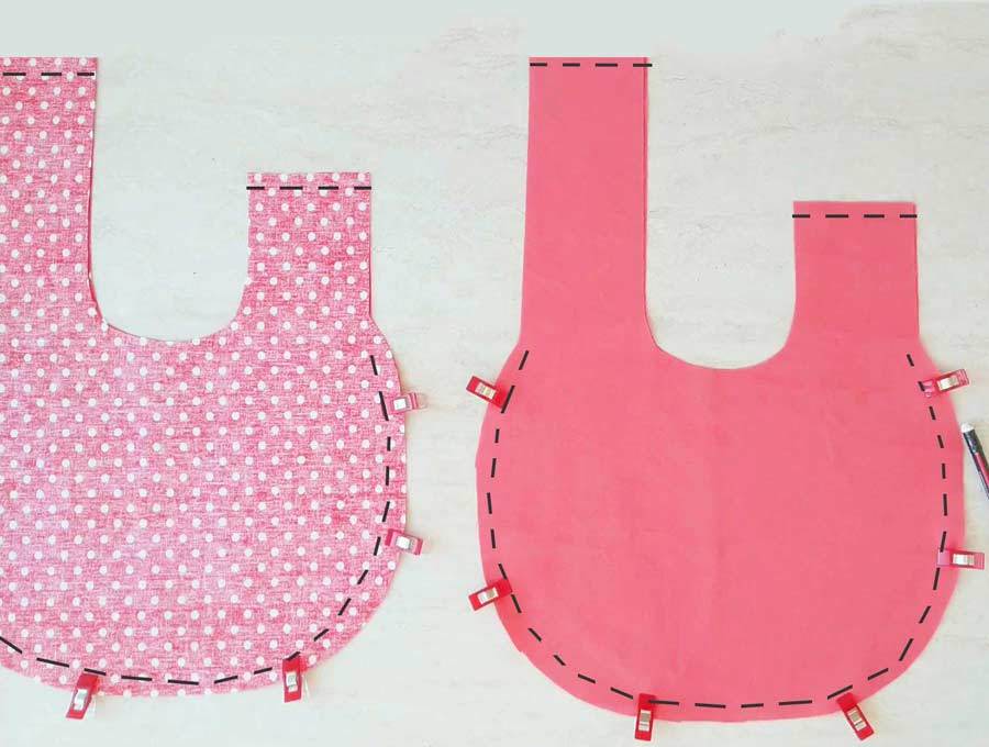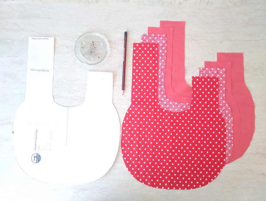 Use the pattern as a guide and cut out two mirror pieces from each type of fabric.