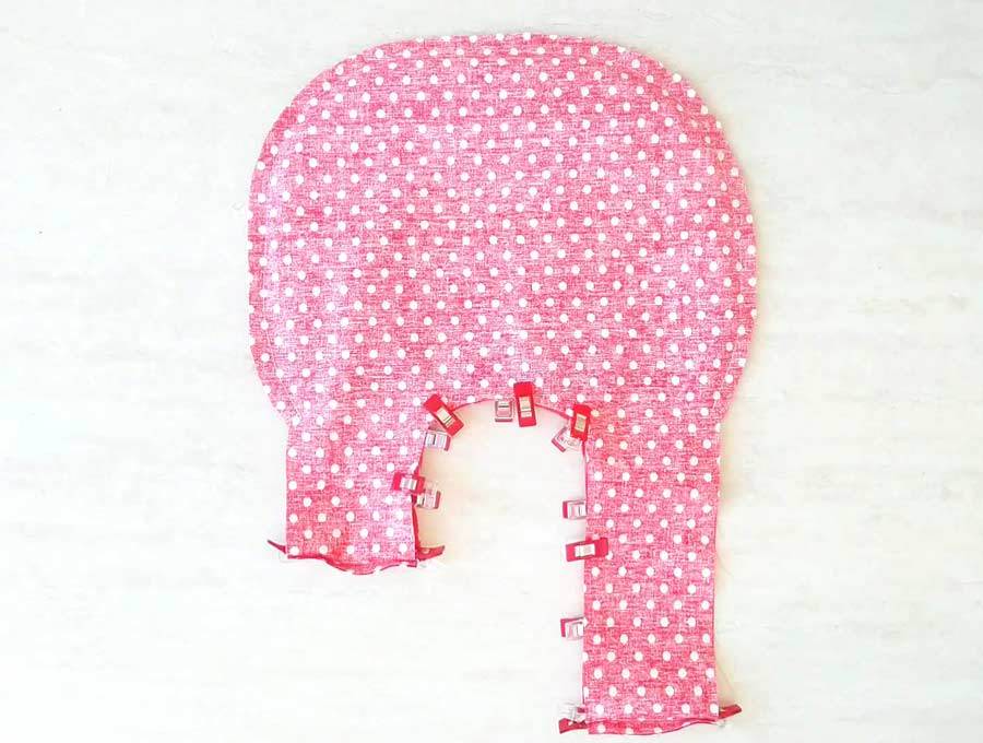 Fold each of the raw edges inwards for about half of an inch. Press them flat with your iron. Secure everything with pins or clips.